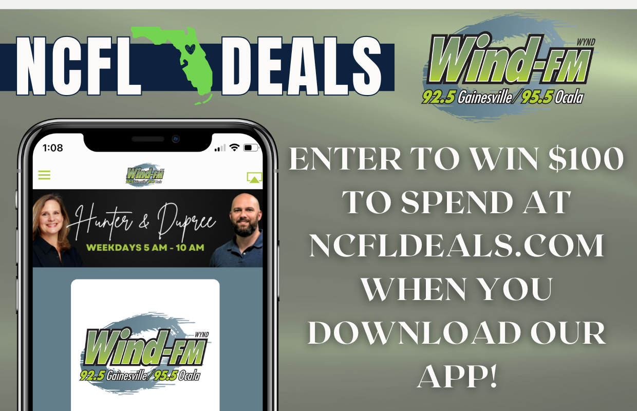 Download the Wind-FM app and enable notifications before Friday November 21st at Noon for a chance to win $100 to spend at NCFLDeals.com!