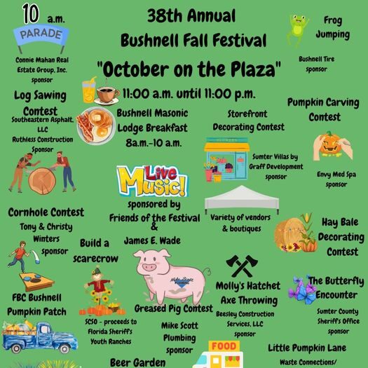 Make sure to check out “October on the plaza” and the 38th Annual Bushnell Fall Festival.