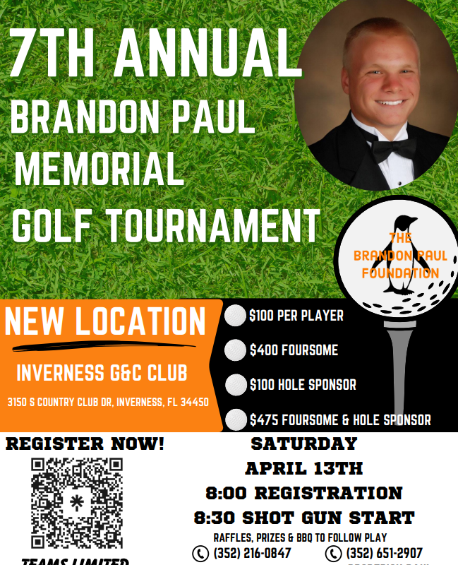 The Brandon Paul Foundation invites you to the 7th Annual Brandon Paul Memorial Golf Tournament.