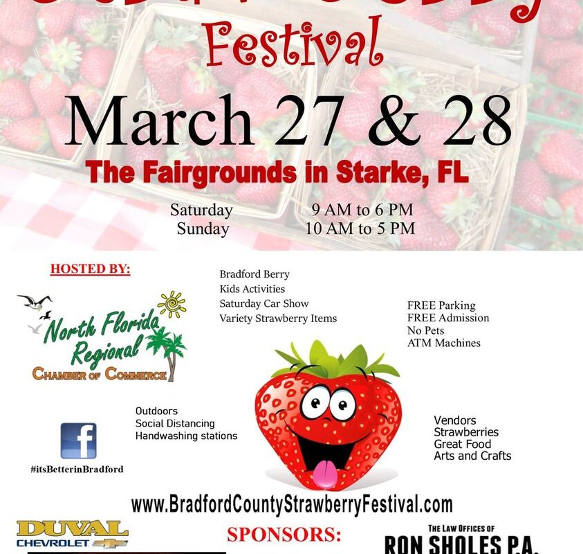 Bradford County Strawberry Festival North Central Florida Media Group When Mar 27th, 2021 9:00am - 6:00pm Where 2300 N Temple AveStarkeFL32091-1614