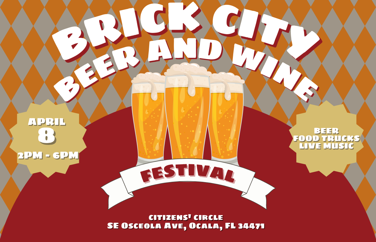 The Brick City Beer and Wine Festival takes place on April 8 from 2-6 pm at Citizen’s Circle in Ocala.