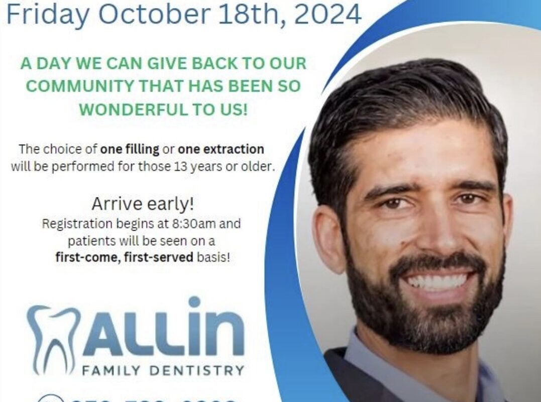 Free Dental Day is a first come first serve event. Offering one filling or one extraction at no charge. Must be age 13 or older. Open to anyone until our list reaches capacity.