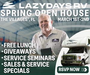 Ready to hit the road with confidence? Join us for the Spring Open House at Lazy Day’s RV at The Villages THIS WEEKEND. Stop by to take advantage of exclusive RV sales and service offers! Learn RV maintenance from the pros during service seminars, product demos, and Q&A sessions. Plus, enjoy FREE LUNCH and giveaways while you learn how to keep your RV road ready! RSVP and save your spot now. Search Lazy Days RV, Wildwood on Eventbrite for this FREE Open House!