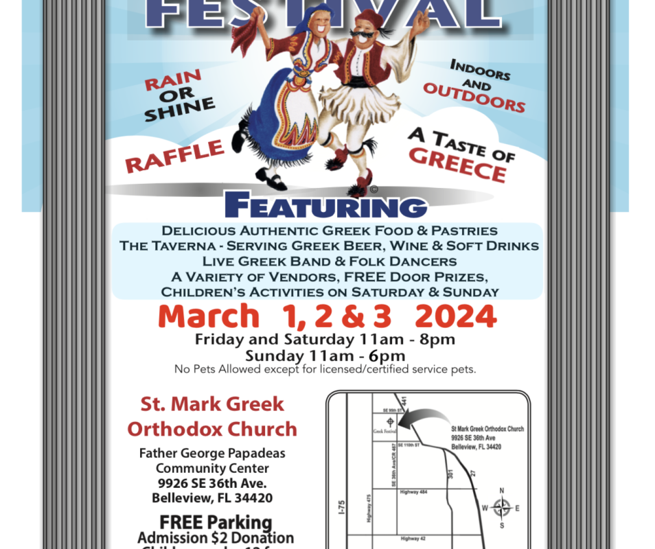 St. Mark Church welcomes you to the 23rd Annual Ocala Greek Festival. They are proud to live in a country that allows people to preserve their rich Hellenic culture and still be Americans. Each year they offer this celebration to North Central Florida so that you may experience a culture that is not only historic and profound, but a culture that celebrates life.