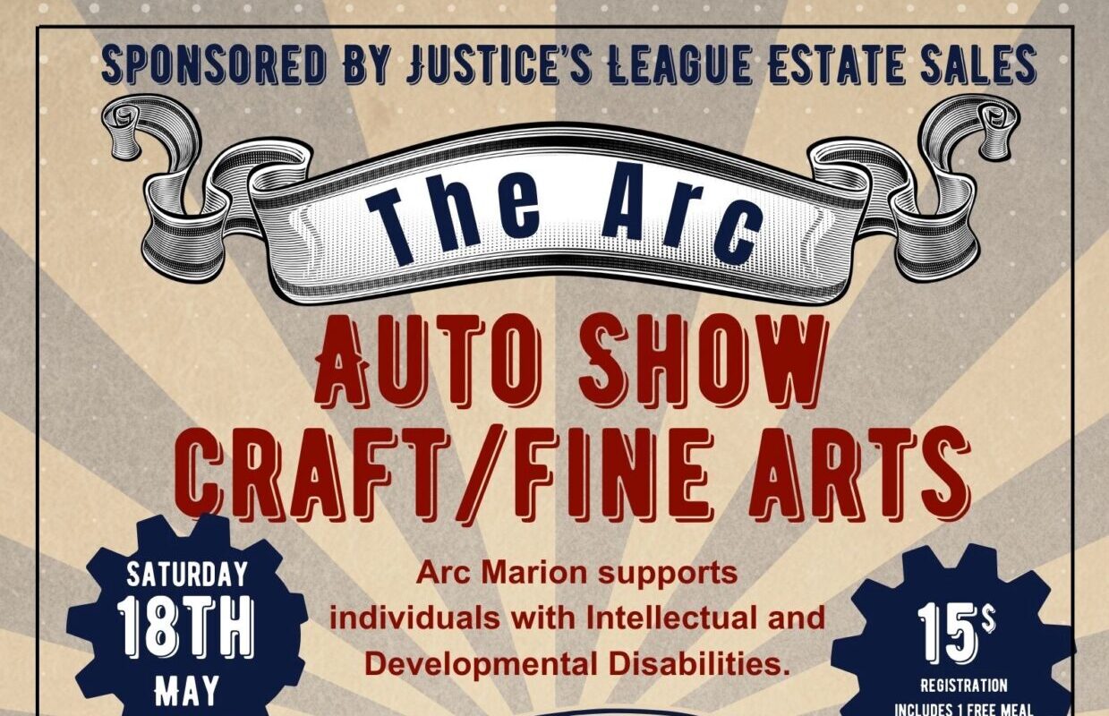 The ARC Auto Show and Craft/Fine Arts.. ARC Marion Supports individuals with intellectual and developmental disabilities. 100% Donations & Fees are going to the ARC Program. Car registration is only $15 and includes one free meal! (spaces available for fine arts/crafts for $10).